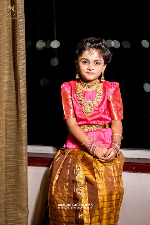 THE FACE Bridal makeover studio - Pattu Pavadai is a Traditional wear of South Indian. This Cutie Princess Adorn the Beauty of South Indian Traditional Dress.